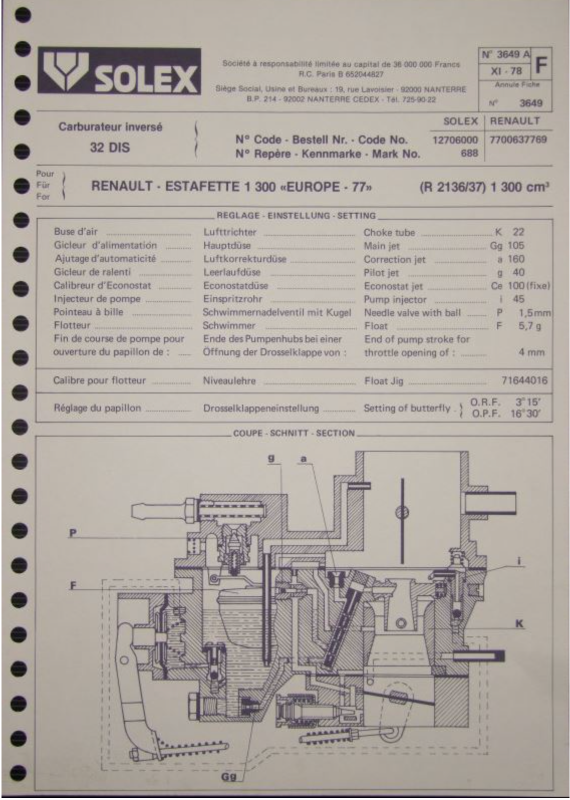 Malheureusement, pour leurs spécifications et notamment le tube d'émulsion, Solex nous envoie à une nomenclature (n° 602) qui n'est pas disponible, "trouvable" sur le net ...