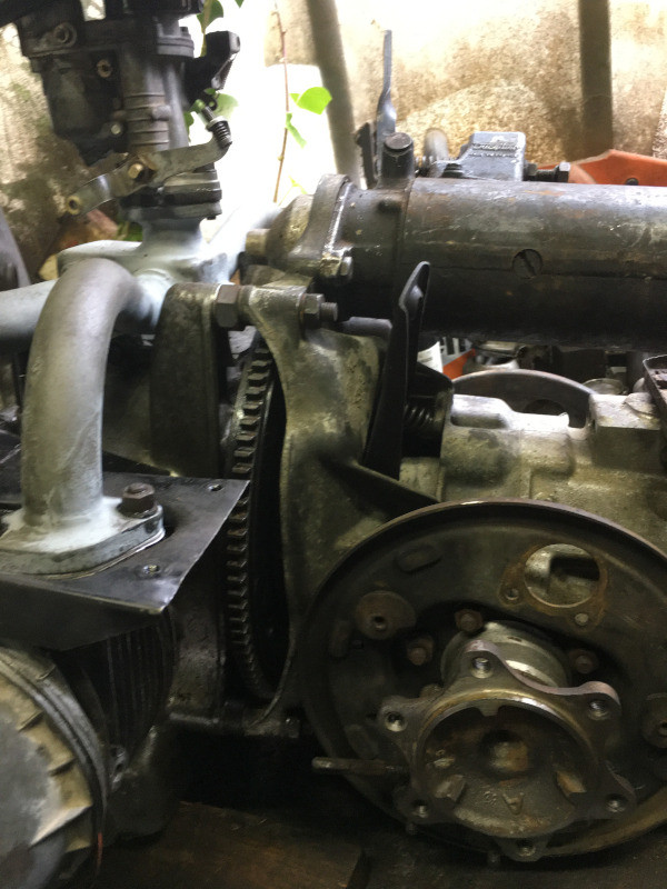 J'ai assemblé le moteur avec la boîte de vitesses "à blanc", pour pouvoir monter un démarreur et faire tourner le moteur pour contrôler la pression d'huile... Enfin, s'il n'y avait pas de (grosses) fuites, et l'huile montait aux culbuteurs..