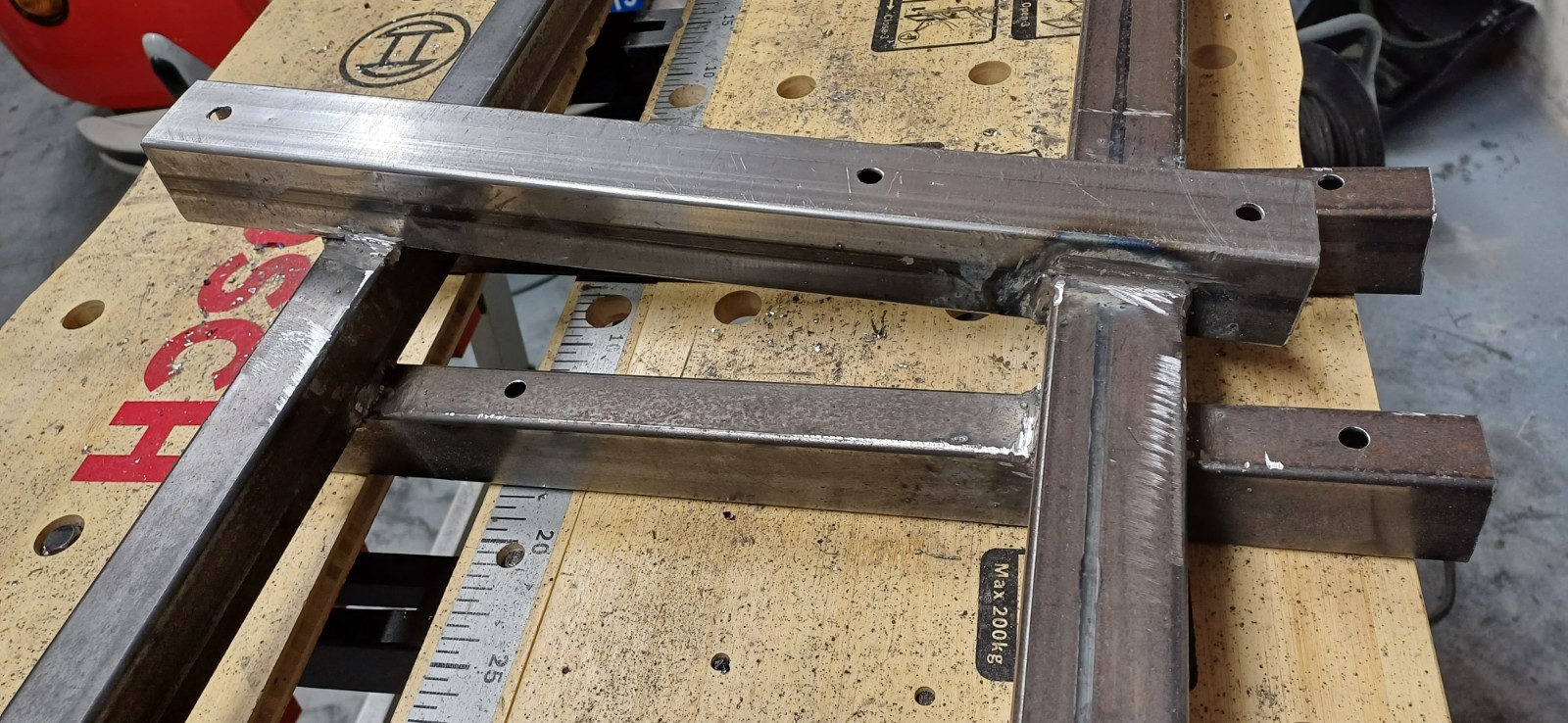 Pour la fabrication, j'ai pris des profilés d'acier 40x40 et 27x40 en épaisseur 1,5mm. Cela fait quelque chose de très rigide.