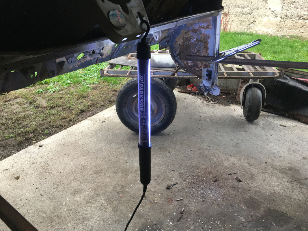 Ce matin, j'ai repassé une couche de FEROSE sur la première, passée mardi dernier. Je pense qu'il vaut mieux réaliser plusieurs couches de ces produits, au pinceau d'abord, puis au pistolet, pour faire en sorte que le convertisseur de rouille passe le plus possible entre les tôles