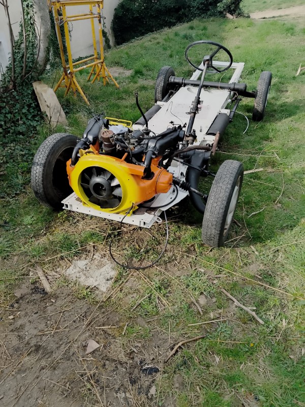 troooop plein de soucis mais c'est reparti ,la tolerie neuve est en place et repeinte comme la joconde et le chassis refermé a vu sa premiere couche de blanc glycero a l'ancienne par Louis le renoooov