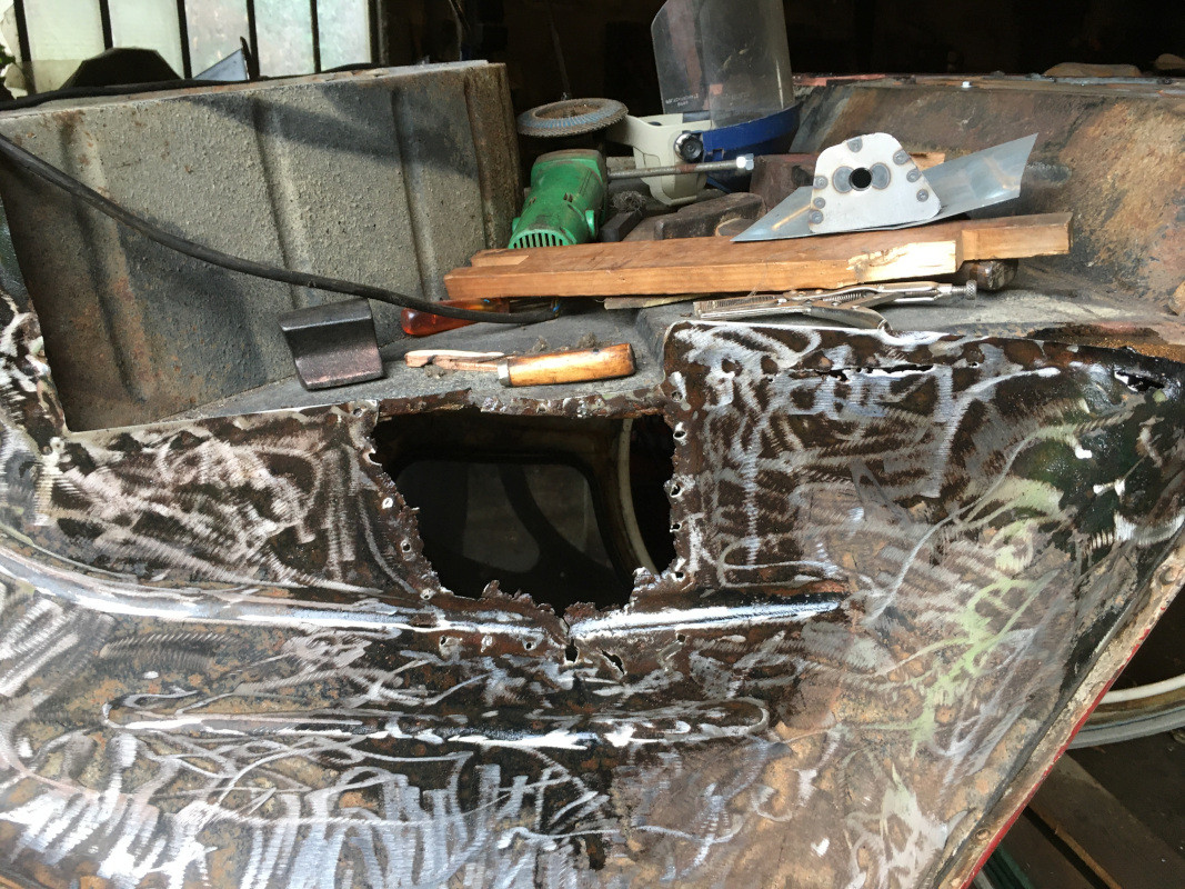 Il va y avoir un travail de grattage, de meulage et de découpage supplémentaire, côté plancher de roue de secours...