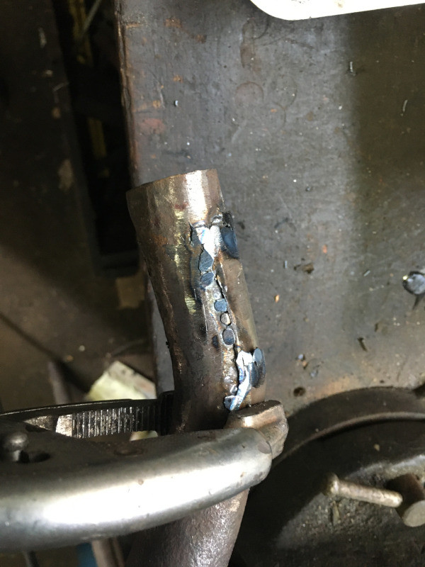 Là c'est un sacré défi de souder un pot perforé par la rouille qui a dû aussi affiner l'épaisseur de la tôle, as tu pu inspecter l'état de l'intérieur?