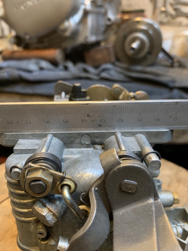 -> démontage complet, barbotage Meca 33 aux US à 55 degrés, soufflette partout, remontage méthodique, réglage du niveau de cuve, vérification de l’étanchéité du pointeau, vérification visuelle de tous les gicleurs air et essence, mise en place de quatre joints à lèvres gris dans les épaulements prévus, sur les axes de papillons des deux corps, changement du joint de couvercle des cuves ( identique par superposition à celui d’origine ) ; démarrage correct, mise en température progressive, et…