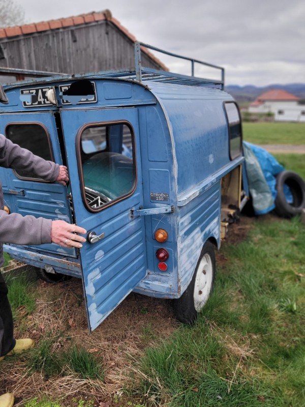 je suis le nouveau proprietaire d'une 2cv ak250 de 1973 qui dormait depuis 20 ans au fond d'un garage et depuis 2 ans sous un sapin ....