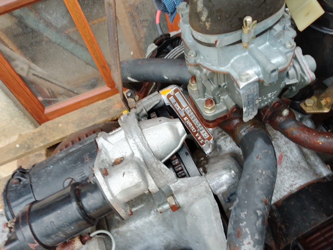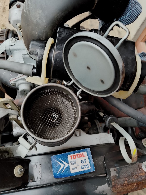 Je ne pourrai donc pas le monter sur une caisse de 57. C'est pas très grave. J'ai tiré la jauge d'huile, elle est parfaitement limpide, c'est vrai qu'elle décante depuis au moins quarante ans...La manivelle entraine bien, pas de problème de ce côté. Quand il pleuvra moinsse je démonterai un couvre culasse pour voir la teinte de l'huile qui s'y trouve, si elle est aussi claire cela confirmerait le peu de kilomètres de ce moteur. Je regarderai l'état des bougies et des garnitures de frein qui pourront conforter ce kilométrage (542!). Ensuite, délicatement avec Renaud on va le faire tourner, vérifier les compressions etc...
