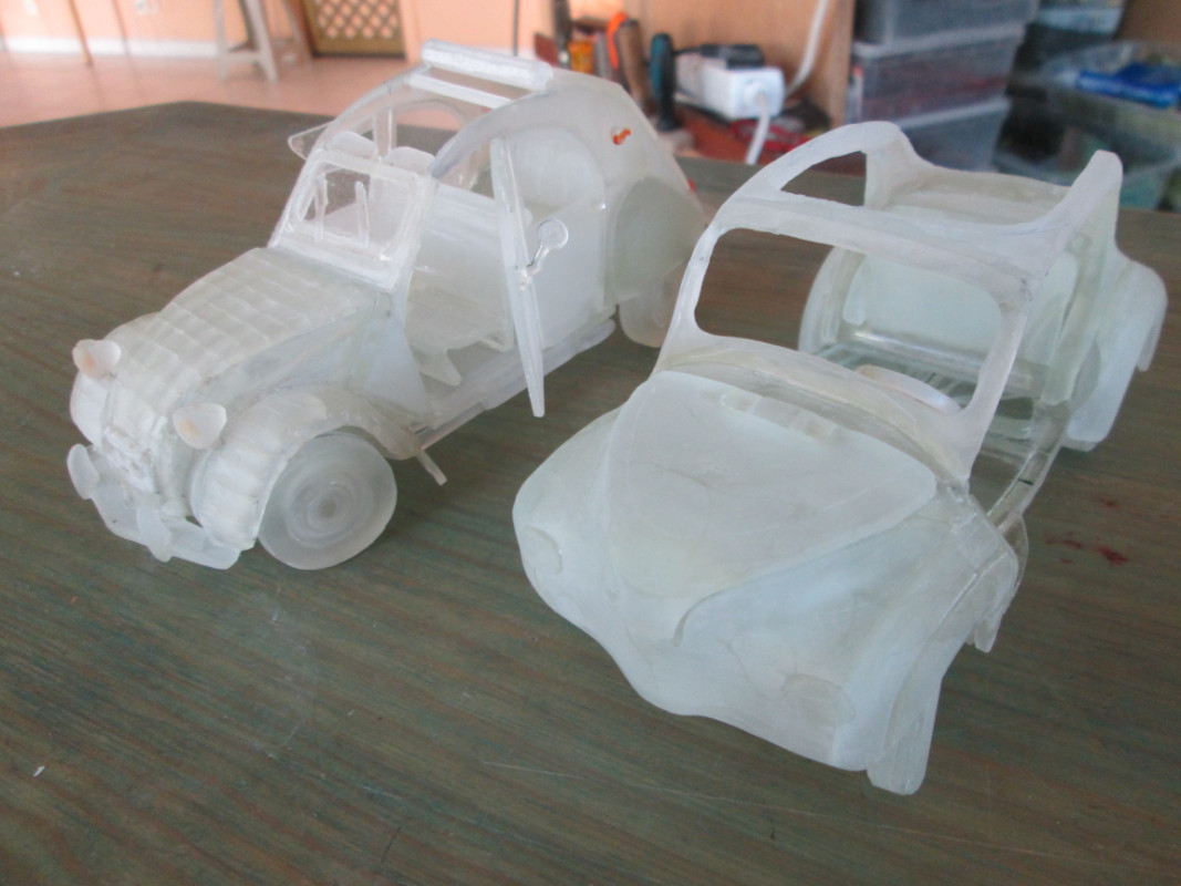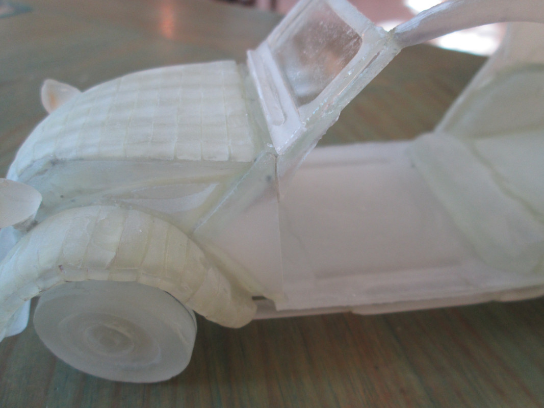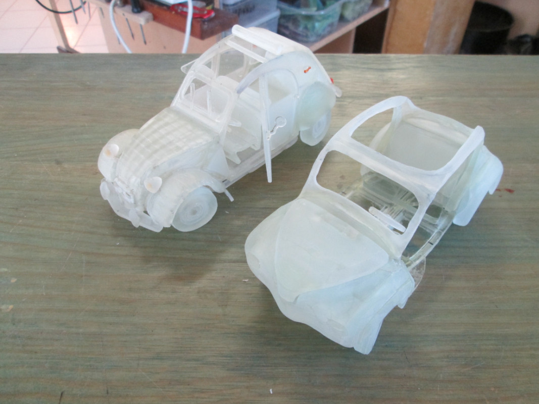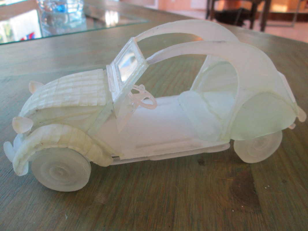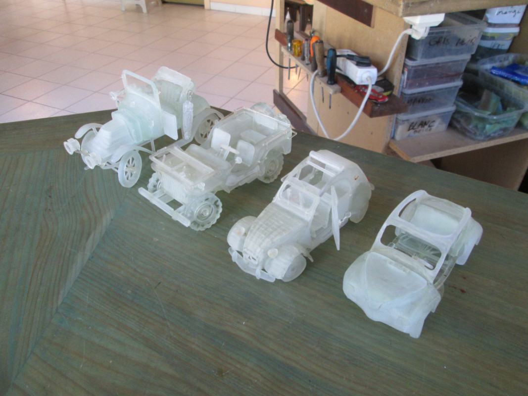J'ai 4 photos de toutes la collection de voiture que j'ai fait. Sur ces photos, la 4cv était en cours de fabrication. C'est la maquette la plus réussie parce que tout fonctionne, portes, capot, il y a le moteur et tout les éléments dans le coffre avant