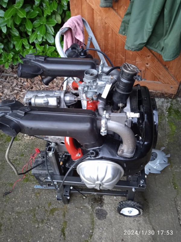 J'ai monté un moteur 2cv4 ( 435cc ) 1974 sur banc pour effectuer les premiers réglages.