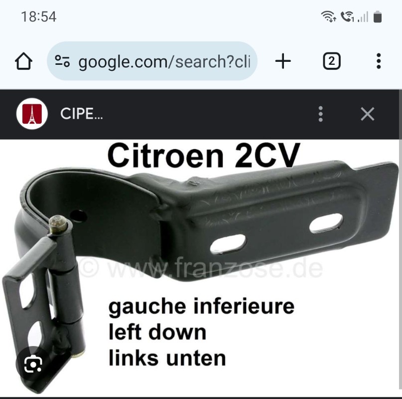 Pour les portes avant de la 2cv4, les charnières supérieures sont cachées par des pièces en plastique fixées sur le montant de la caisse.