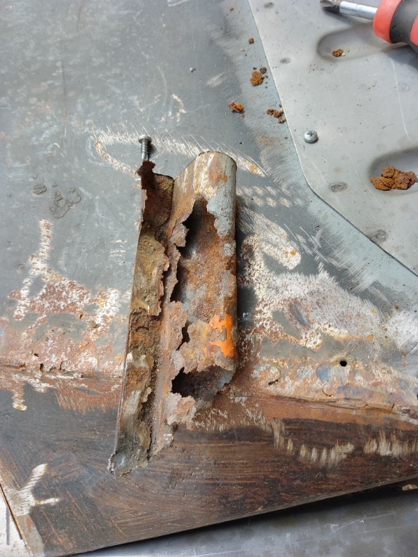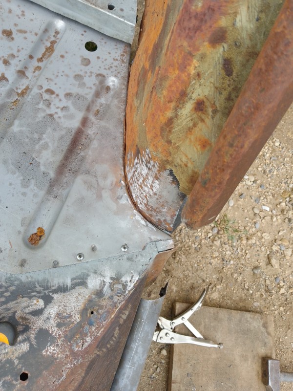 je vais supprimer la partie basse qui est également pourrie et faire une greffe sur Fury Road avant de souder toute la carrosserie.