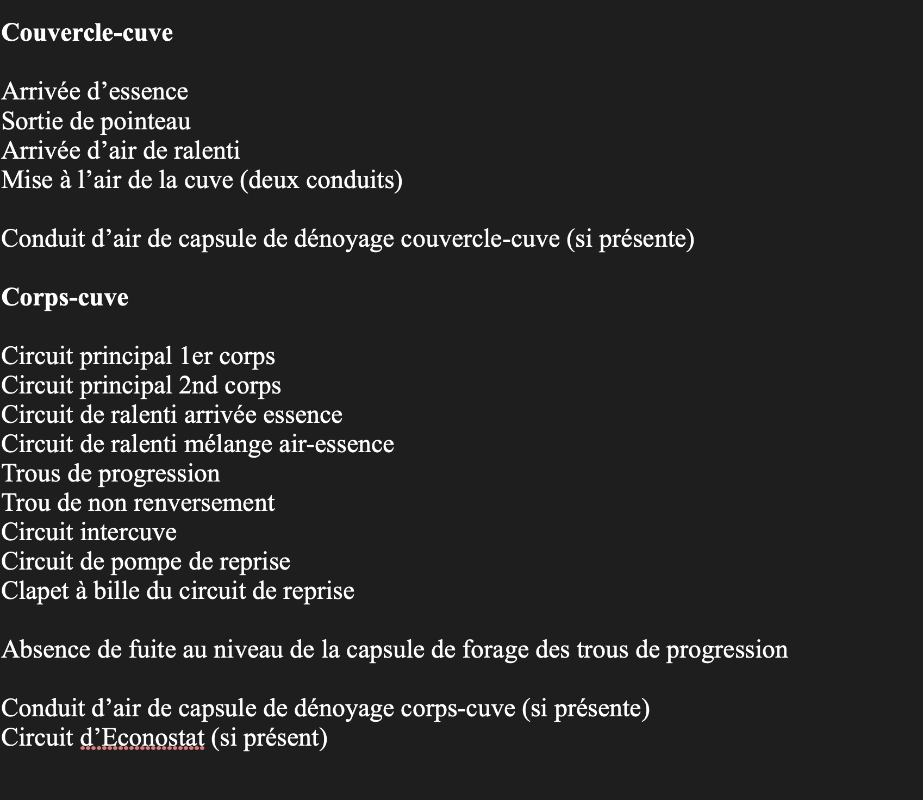 4 - la liste de tous tes circuits à vérifier : c'est une des conditions du bon fonctionnement de ton carbu (qui sur la photo, est sale).