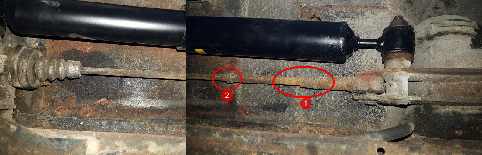 Alors, après m'être allongé sous la deuche et observé la situation d'après tes indications, je n'ai trouvé qu'un endroit à dégripper sur chaque tirant : repère n°1.