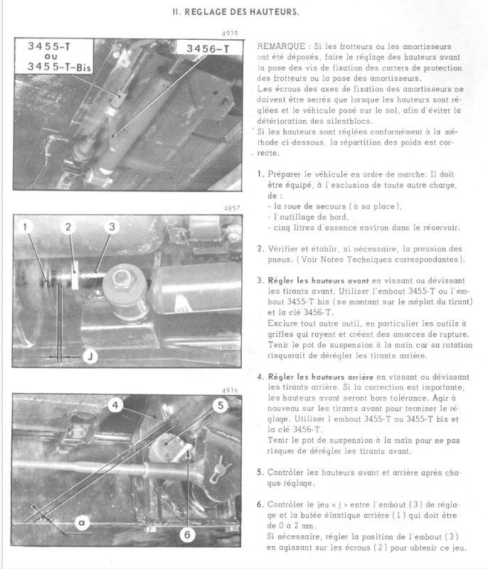 ici au niveau de l'outil 3455 T : Il y a quatre emplacements à dégripper, afin d'agir sur les hauteurs de caisse, situés à l'extrémité avant et à l'extrémité arrière de chacun des deux pots de suspension.