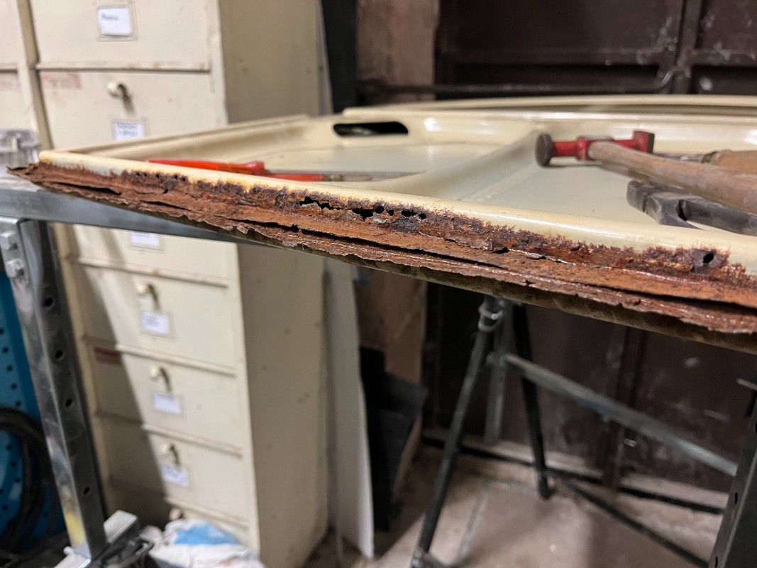 Bonjour à tous les deuchistes, je suis dans le changement des profil de joint de portes sur une 2cv, mais problème derrière la baguette complètement pourri je trouve une sacré rouille.