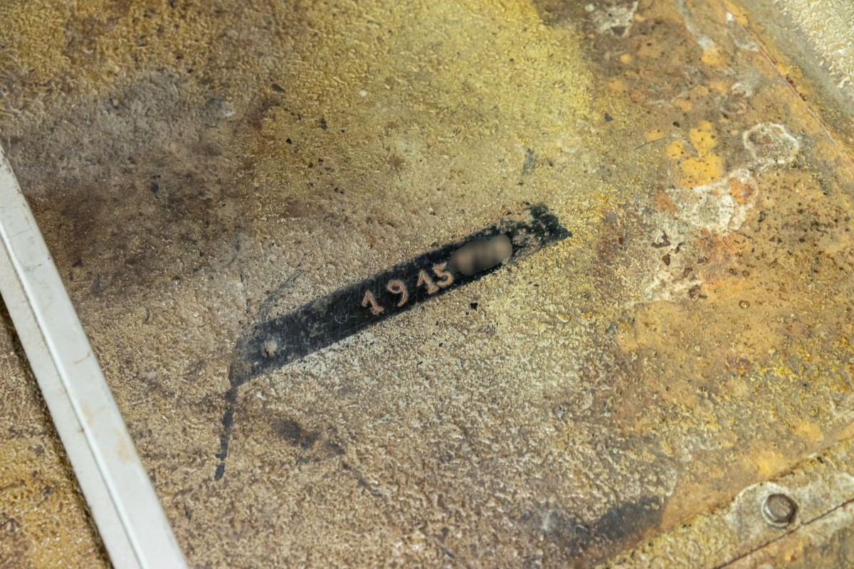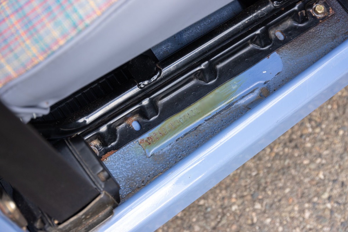 Jusqu'au millésime 81 (juillet 1980), la frappe à froid se situe à l'avant de la tôle supérieure du châssis, près du support de siège. Normalement, cette partie n'est pas peinte.