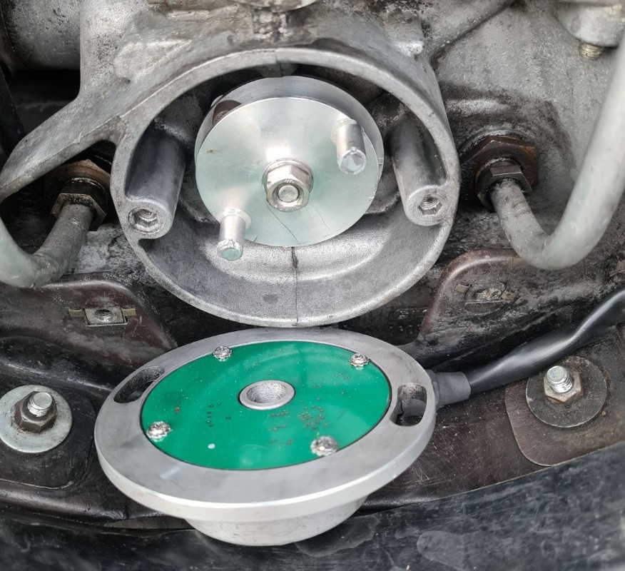 Après avoir penché dans un premier temps pour un souci d'alimentation en essence, celle-ci vérifiée (refaite) j'ai maintenant de manière certaine l'allumage de ma 2CV 652cm3 qui est déréglé.Je l'ai remis en état car j'ai l'impression que la platine d'adaptation porte aimant avait avancé dans le creux de l'arbre à cames et était entrée en collision avec la platine électronique d'allumage, une des 4 vis de fixation du circuit électronique était partie et les 3 autres vis ainsi que la platine sont meulées.
