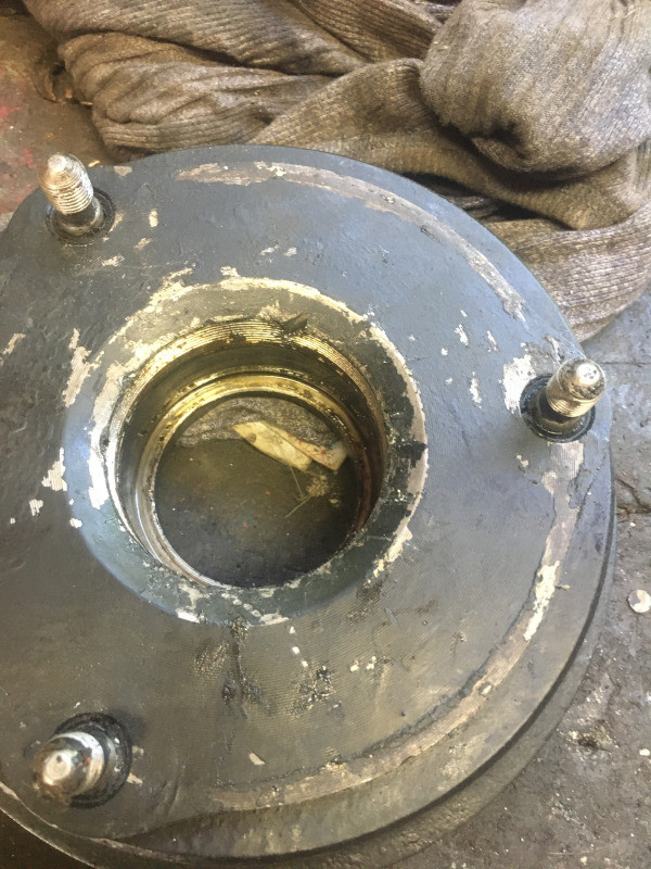 Une fois l'écrou de 44 mm dévissé, j'ai arraché le tambour, rien que de très classique jusque là.