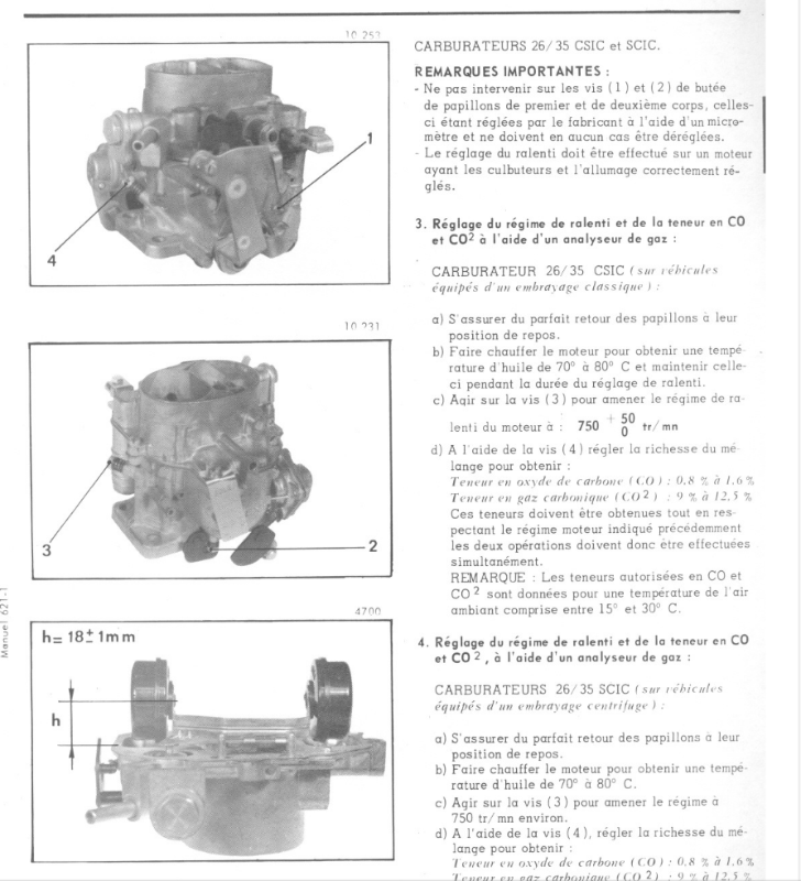 PS 2 : pas besoin d'analyseur CO/CO2 pour régler la pollution sur une 2cv ... Suffit de serrer la vis de richesse pour que le contrôleur du CT soit content et si le régime descend trop bas, tu resserres ta vis d'axe de papillon pour l'ouvrir ...