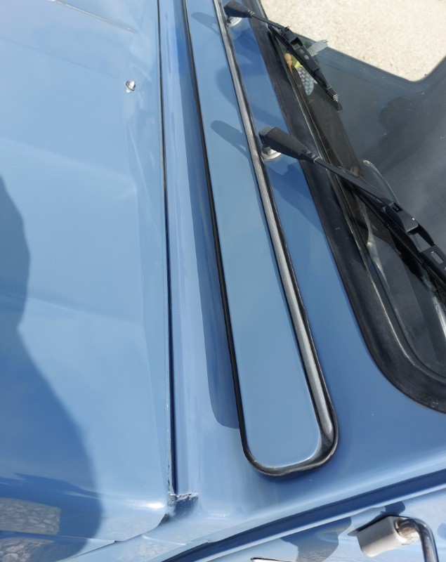 Comme évoqué il y a un certain temps il me fallait décaper quelques désordres et point de rouille au bas de la baie de parebrise,, presque au droit de la charnière, voir les photos d'avant dans le post que j'avais ouvert et auquel je n'arrive pas à "raccrocher" ce dernier...