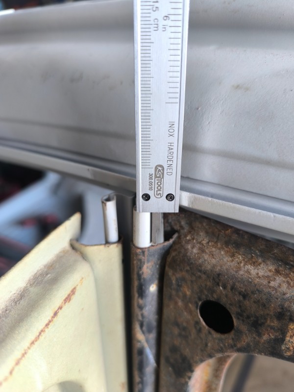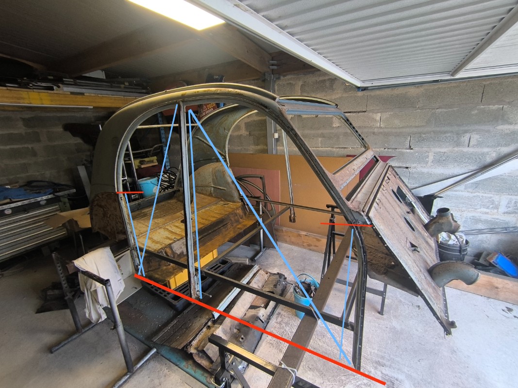 Je suis sur la restauration de ma caisse, après avoir déposé mes planchers, joue d'ailes, bas de caisse et partie supérieure du caisson sous banquette, et avoir effectué un sablage total du reste J'ai commencé par réparé à l'étain les quelques petits trous (beaucoup!!) sur la carrosserie Je m'attaque au montage à blanc des bas de caisse ! 1er question: Quels sont les dimensions des entrées de portes (diagonale et autres) et quels est la hauteur de réglage des portes (15-20mm ?) 2ème question: comment rassembler le caisson sous banquette ! Sachant que je change uniquement la partie supérieure et les deux angles ! Faut-il en premier mettre en place la partie qui fait l'angle, puis les bas de caisse, souder les bas de caisse côté intérieur, puis y insérer les deux angles! ?