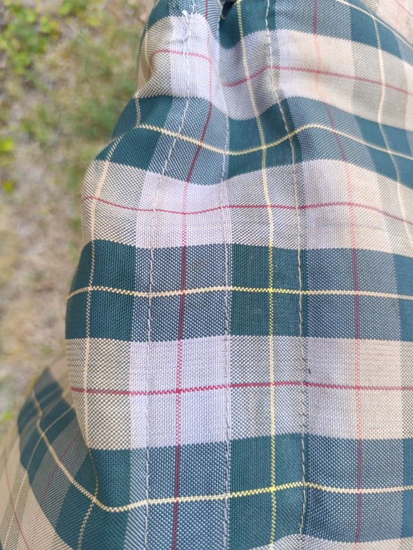Je vous ai présenté la type A de mon grand père qui doit être restaurée prochainement. L'assise de siège côté conducteur est mal en point. L'arrière est en état correct mais la couleur est passée avec le temps. C'est le tissu écossais vert et gris.