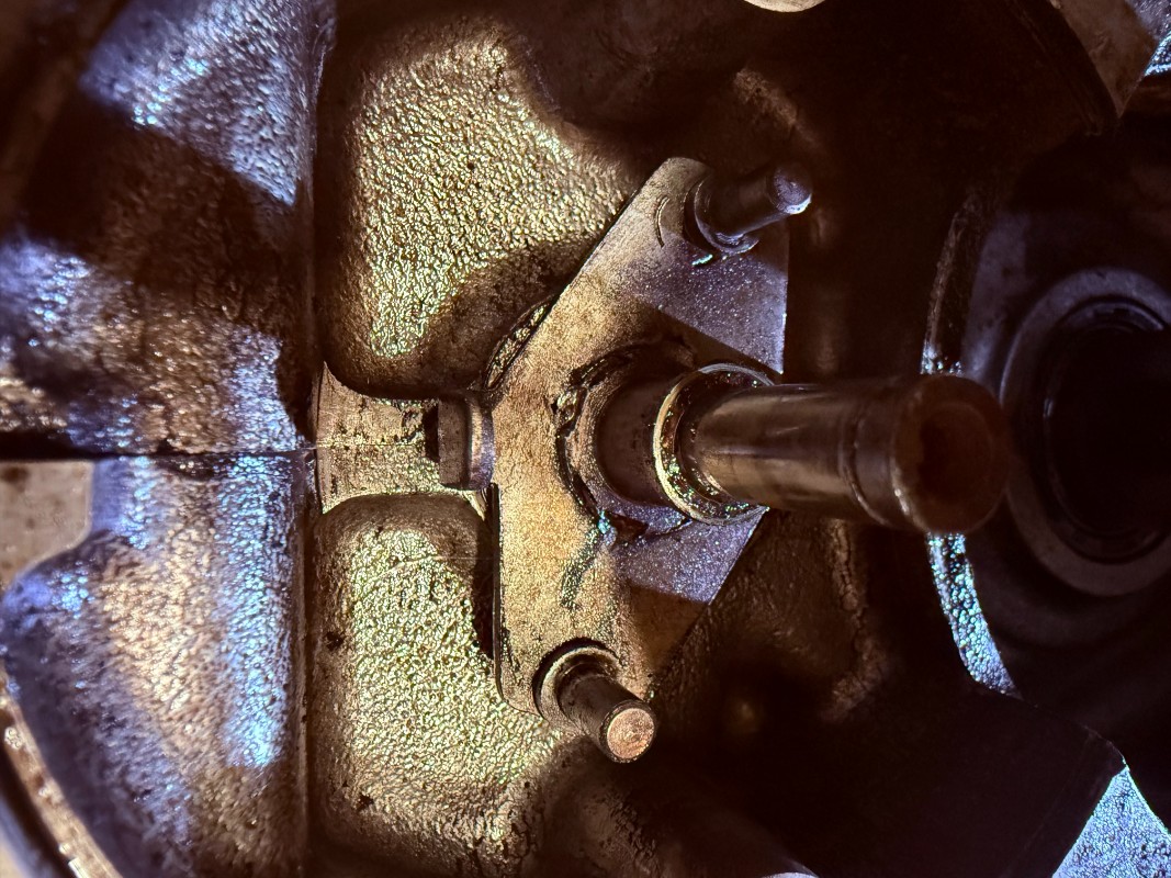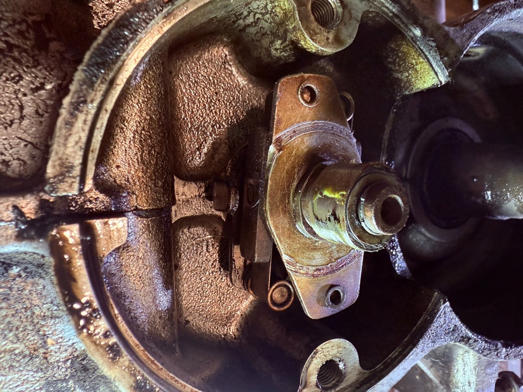 Le moteur est dans un état étonnamment parfait et d’origine, tout correspond à la carte grise, il semble qu’il y ait eu le joint de pompe à essence changé, tout le reste semble très vieux et d’origine, ce qui explique l’encrassement monumental de tout le moteur.