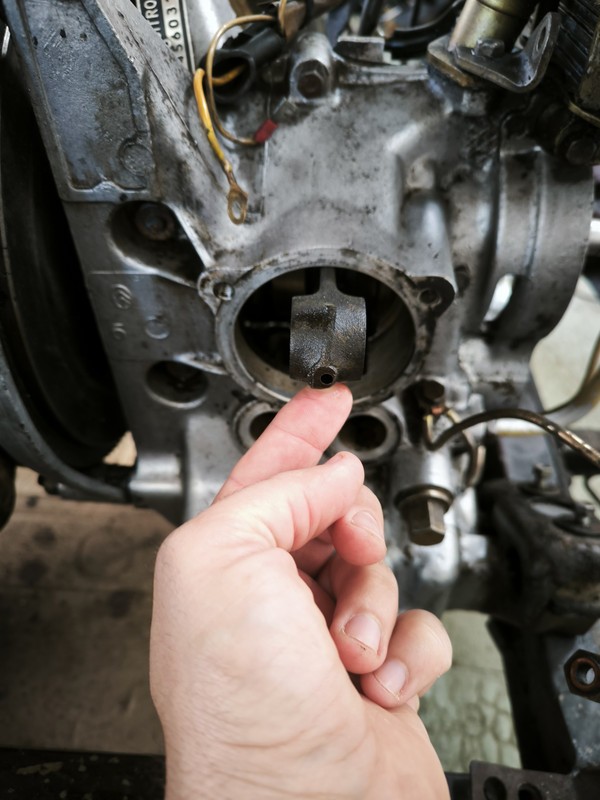 Dépose du cylindre gauche sans problème me permettant de constater que tout semble ok côté bas moteur, du moins que le moteur semble tourner normalement dans les deux sens sauf que...
