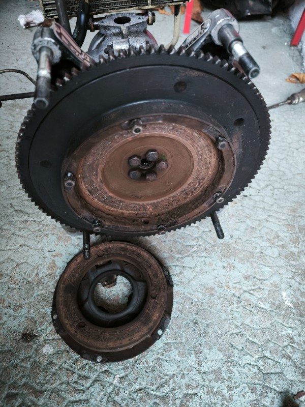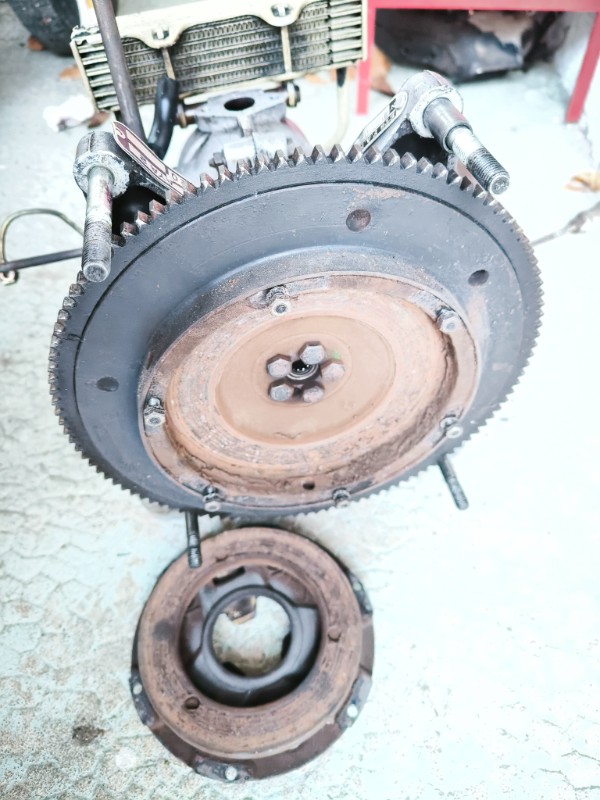 Voilà où j'en suis, j'ai suivi vos conseils en déposant le moteur et l'embrayage pour voir son état, qu'en pensez vous ?