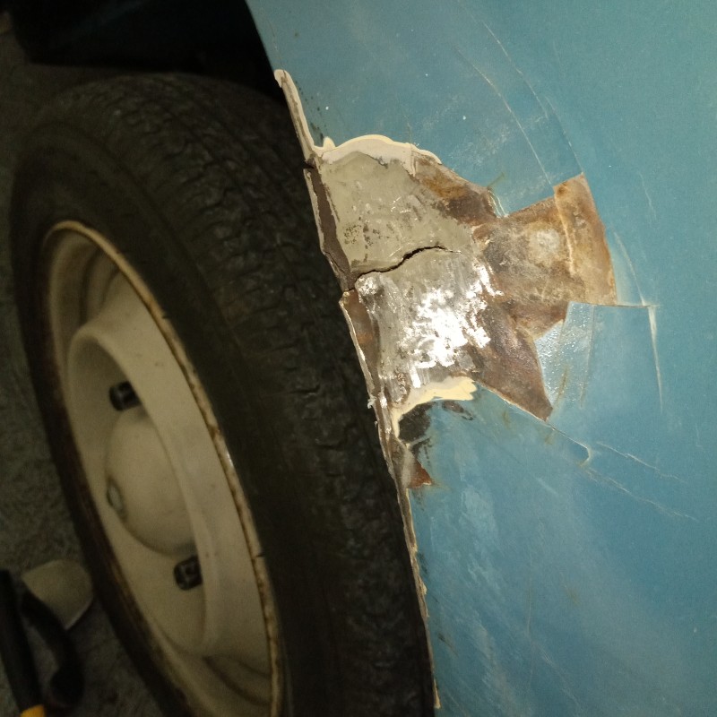 Bref, apres la rénovation moteur (plutôt gros entretien), peinture des pare chocs et réfection complète des banquettes je me suis pris d'envie de réparer mes ailes avant. Comme vous le savez , les ailes avant se fissurent au niveau du galbe et ajouter a la corrosion c c'est pas évident de réparer tout ça.