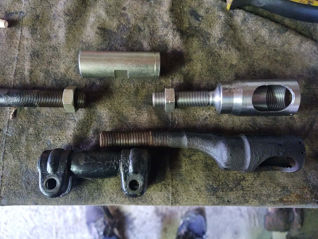 Sur cette image on voit la longueur de filetage qui entre dans le manchon de chaque côtés, les contre écrous sont à leur place. On devine sur l'ancienne pièce que la partie qui entre dans le manchon est bien plus importante (au moins 4cm de chaque côté)