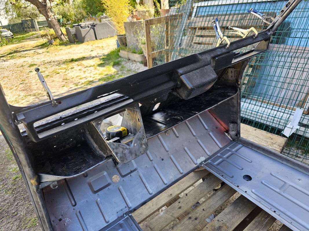 Après ca sera demontage de tout, enlèvement du tableau de bord, persage pour les bouchonages, on recale tout et on soude