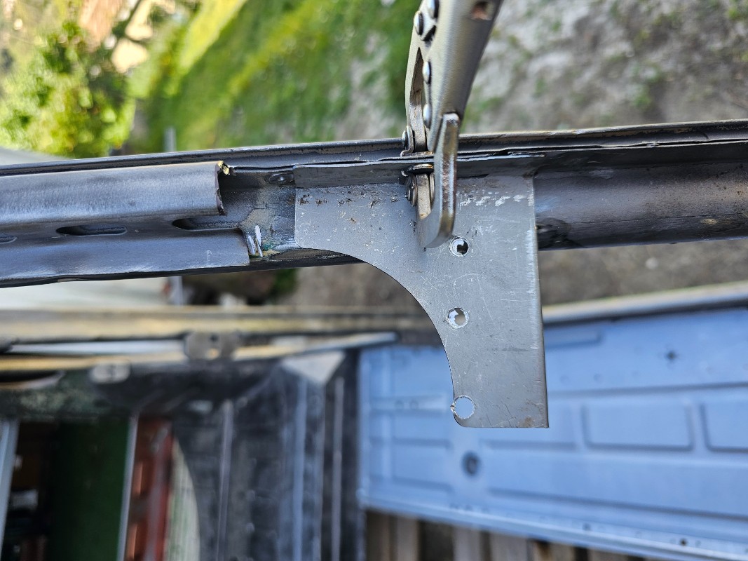 J ai récupéré un bout de tôle, que j ai recouper, mis à l équerre sur sa longueur et soudé tout ca au mig