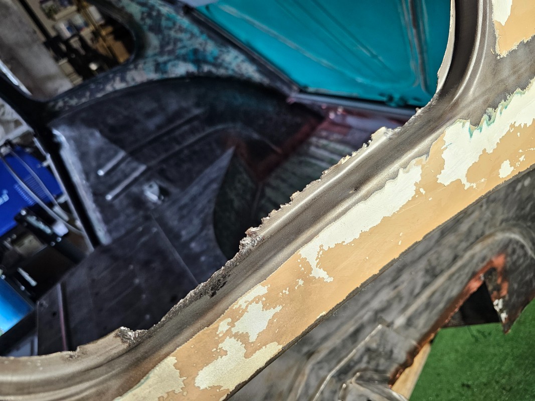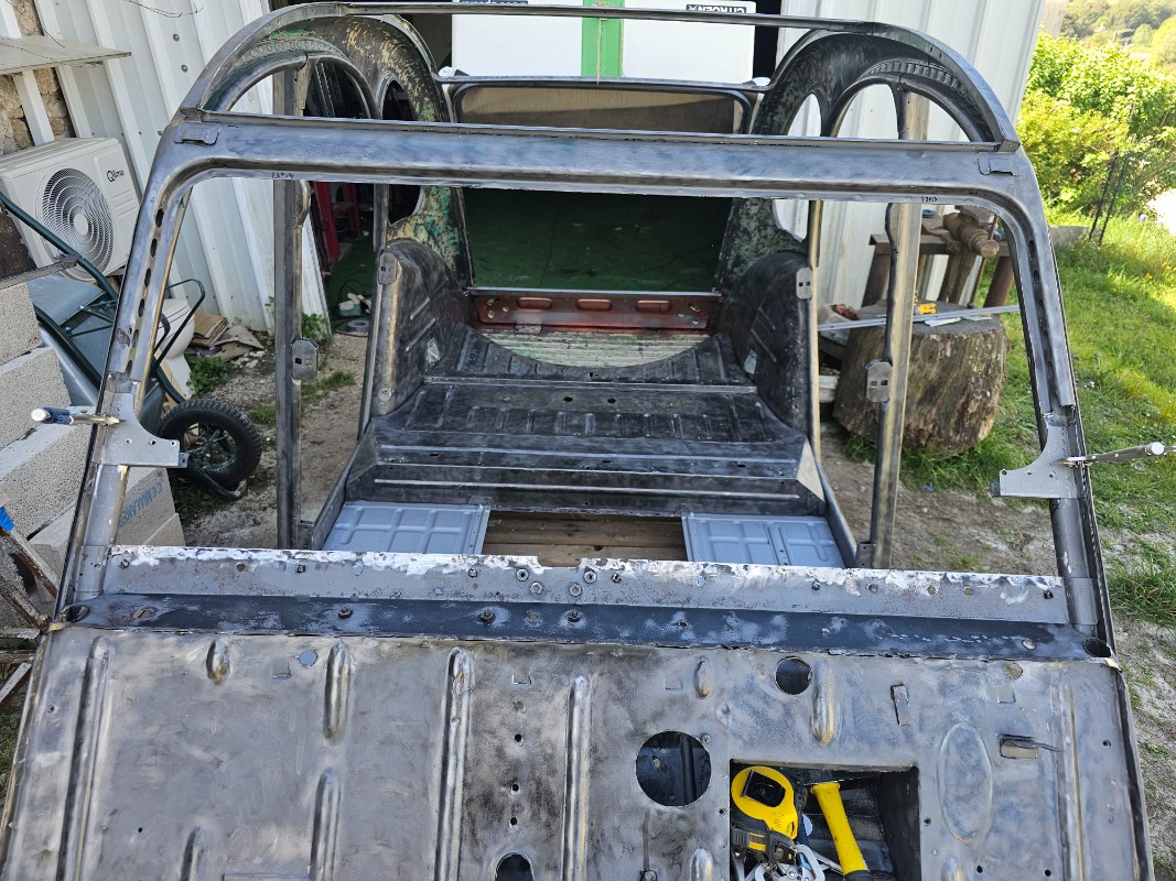 Oui j ai préféré mettre la caisse à nu complet pour bien voir tout ce qui était abîmé, rongé par la rouille...décapage à la brosse sur meuleuse, brosse à main, chalumeau et sablage...