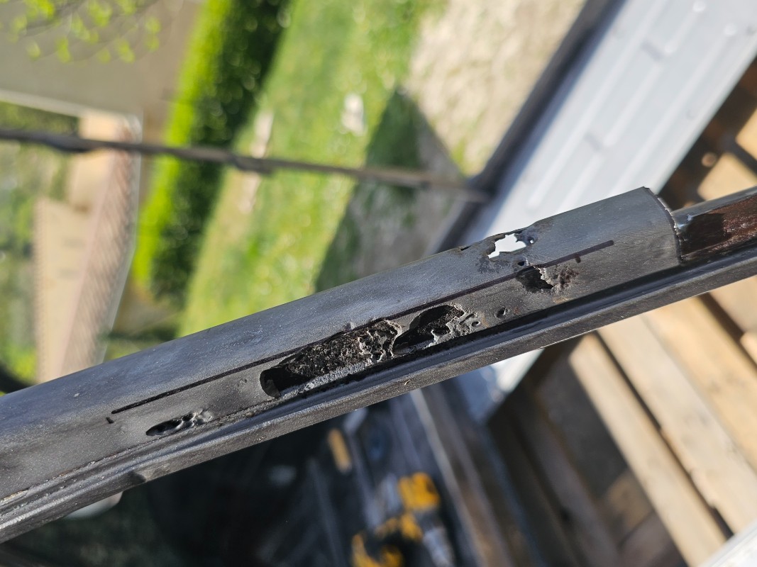Demontage de la traverse milieu de pare brise et ohhhh surprise, en présentant la neuve, il manque 1cm