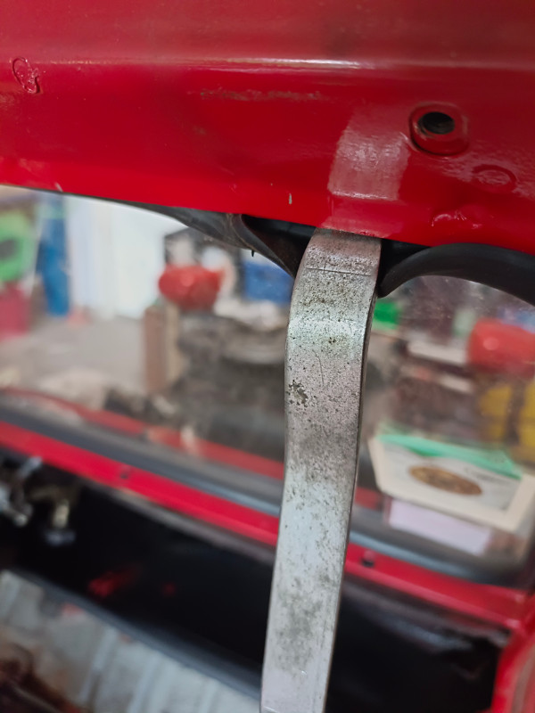 J'en ai profité pour mettre le joint coupé sur la porte gauche, la jonction en haut, moins de risque de fuite, la pate noire à cache culbuteur fera le reste, déjà utilisée sur des joints de pare brise, ça marche tres bien ;)