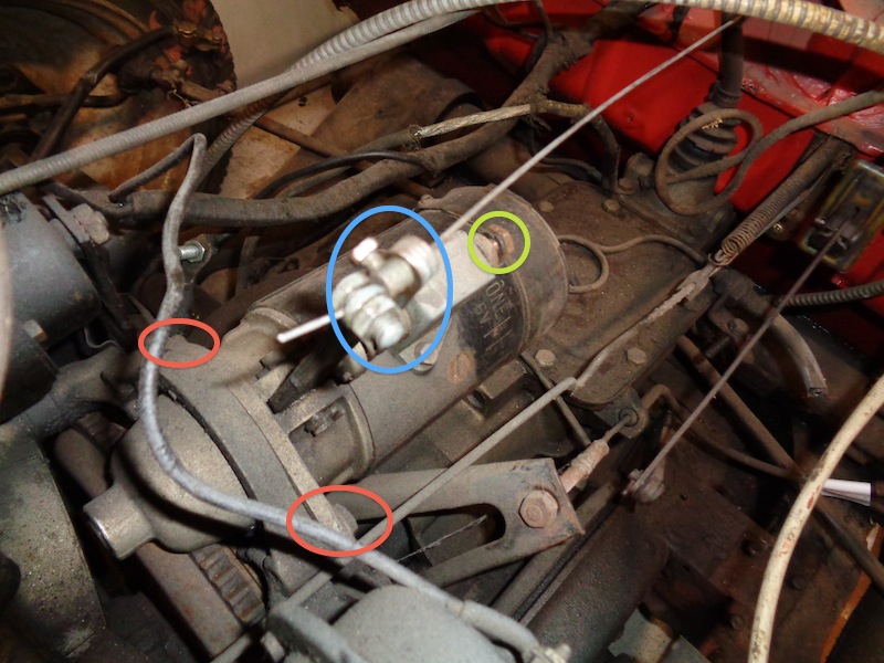 1) avant de démonter le démarreur, s'assurer qu'on a bien des goupilles de rechange. C'est bête mais je me suis fait avoir… obligé de bloquer avec un clou tordu ! Pas très pro, faudra que je le change pour une vraie goupille !