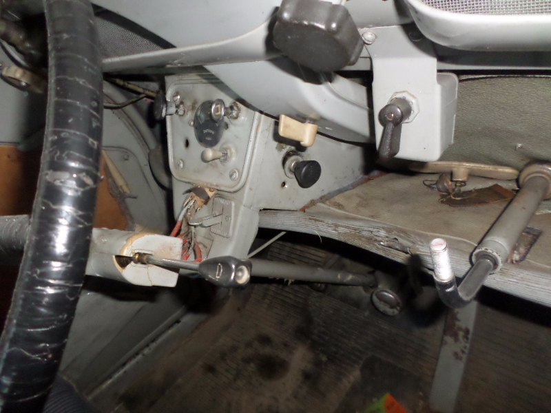 La planche de bord a l'air correct, sauf le remplacement de la clé de contact par un bouton dirait-on, et le commodo et la molette du volet d'aération (il me semble qu'elle devrait être grise) qui ne sont pas non plus du bon modèle. Le volant devrait être peint en gris rosé.