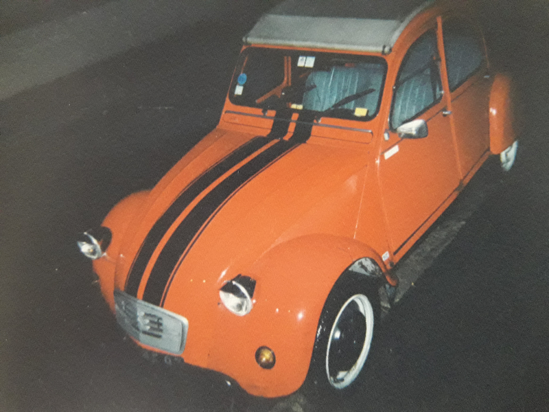 Cette après midi , la boite à photos a été ressortie , toujours des découvertes , je tombe sur une photo de la Deuche du fiston après avoir :volant: quelques temps avec la 2 cv a été vendu pour l'acquisition d'une Japonaise de 160 cv ( faut bien que jeunesse se passe :enerve2: ) maintenant devinez sur quoi il lorgne :pense: .