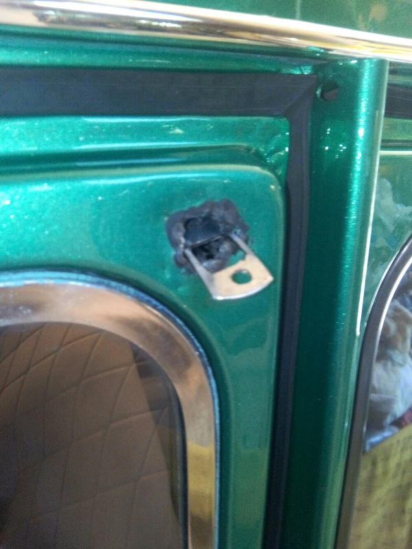 La colle Poli-Uréthane étant ma grande copine, j'ai utilisé un petit tournevis pour en déposer sur les bords à l'intérieur de la portière, puis enduit la partie qui sera contre la carrosserie. On insère calmement...