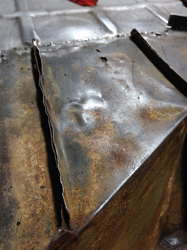 On continue les travaux avec le meulage des soudures de la face arrière et le remplacement d'un bout de l'aile arrière droite, bien attaquée par la rouille, eh oui l'eau ça s'infiltre mais ça ressort pas toujours !!!