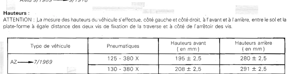 Voici les côtes pour le réglage des hauteurs, prises entre le sol horizontal et le centre de la distance entre les têtes des vis de fixation des essieux Donc, à l'arrière, c'est bon