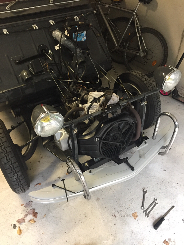 Voilà, tout à repris sa place sur le moteur, le moteur a repris sa place sur le châssis, et a redémarré tranquillement. :clap: