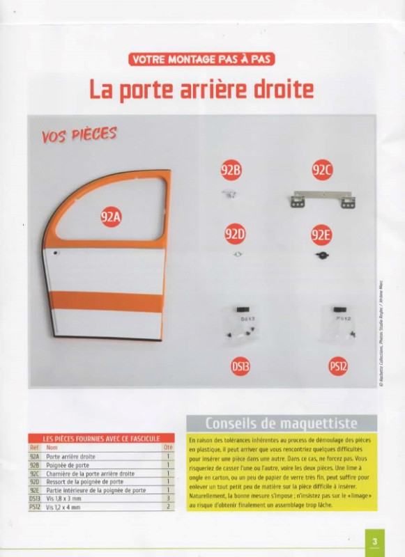 Voici la suite du montage de cette belle SPOT Fascicule n° 92 La porte AR droite