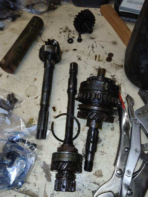 La bonne nouvelle c'est que les pignon sont en bel état, sans dent cassé et l'usure est vraiment minime. Le week end prochain sera consacré au nettoyage et au listing des pièces à changer (roulements,...)