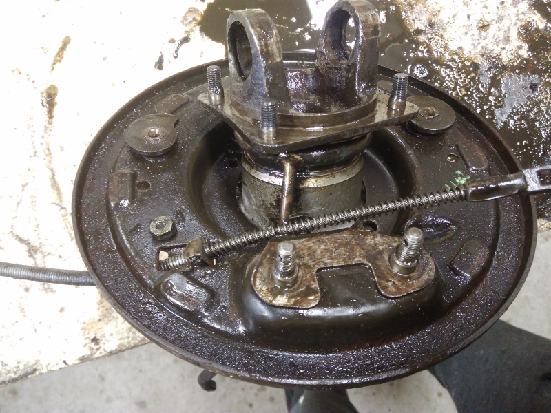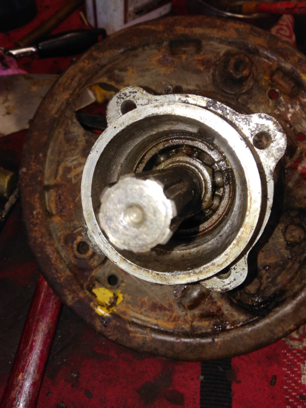 Pour le moment je continue sur ma boite et je me demandais comment retirer les flasques des tambours pour les restaurer ainsi que les roulements des cardans pour les changer. Je vois une sorte de circlip (mais je ne sais pas comment l'enlever), et un écrou maté, pour le moment inaccessible. :???: :???: