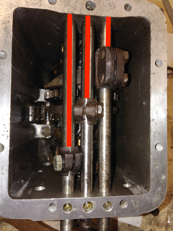 En revanche j'ai provisoirement remonté le cul de boite et le levier, et tenté de passer les vitesses. Résultat: la 1ère et MA ne passent pas. La 2nde passe bien. La 3ème avec difficulté mais on y arrive. La 4ème (surmultipliée) passe bien depuis la 3ème mais impossible de revenir au point mort ensuite.
