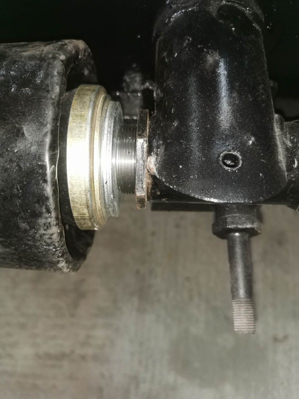 j'ai fait un modif par rapport a l'origine car sans cette modification impossible que les soufflets des tiges tiens donc j'ai mis 2 grosses rondelles percé au diamètre sur chaque cotées de pots comme çà je récupère un peu de marge pour les soufflets et je trouve que ca tiens mieux aussi au début c'est monter le premier sans mais j arrivée a tourné le pot sans forcé maintenant il tourne plus