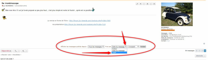 RICMAN41 a écrit ::salut: P'tite suggestion , il n'y aurait pas un moyen pour laisser la liste telle quelle ( classement par ordre croissant) plutôt que la remontée du dernier message se qui va être le foutoir total dans très peu de temps :laughing: