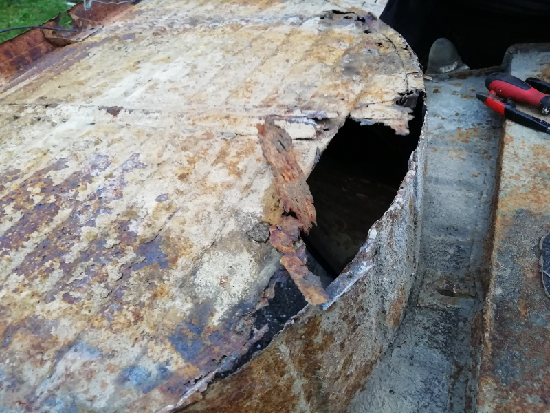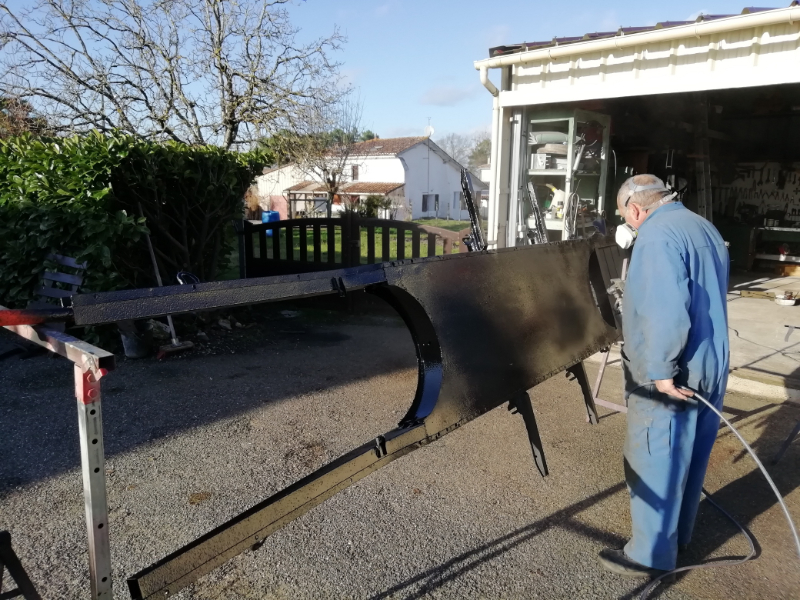 Cependant, le châssis n’est pas pourri. Des plaques de renfort sont soudées au endroits « fragilisés » et les tôles changées. Maintenant, la seule modification notable va être la réfection de la tôle de support du frein à main.