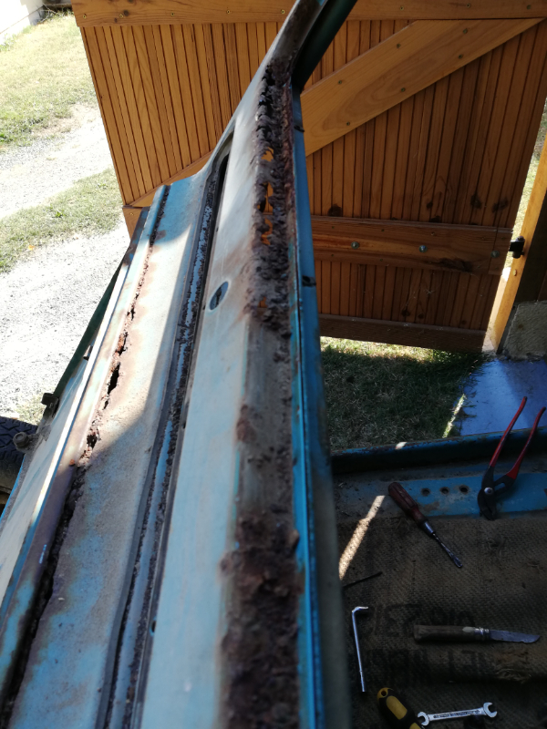Heureusement le dessous n'a pas souffert, la corrosion n'ayant pas eu le temps de faire son oeuvre...Je vais avoir besoin de conseils pour le remplacement de la baie de pare-brise. J'ai commandé le modèle demi baie + charnière de capot : http://static1.renov-2cv-mehari36.com/3 ... tielle.jpg